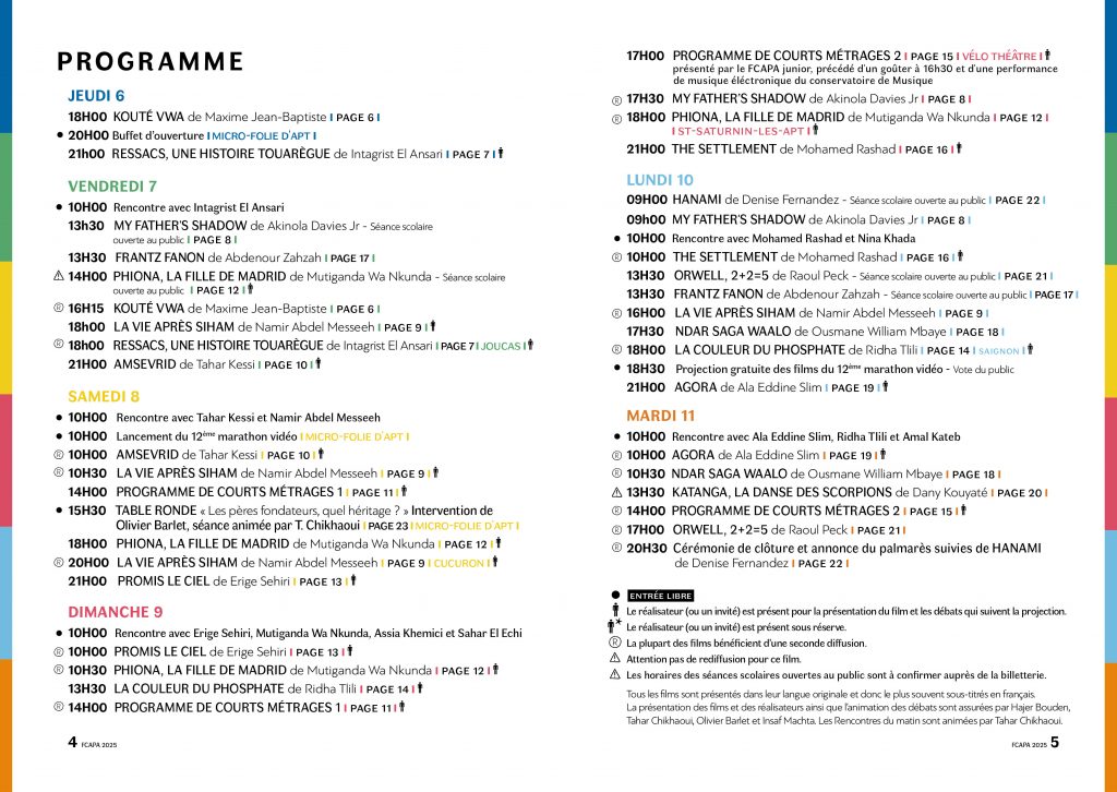 Découvrez la programmation jour par jour du 23ème Festival des Cinémas d’Afrique du pays d’Apt du 6 au 11 novembre 2025. Cliquez ici pour accéder au programme complet.